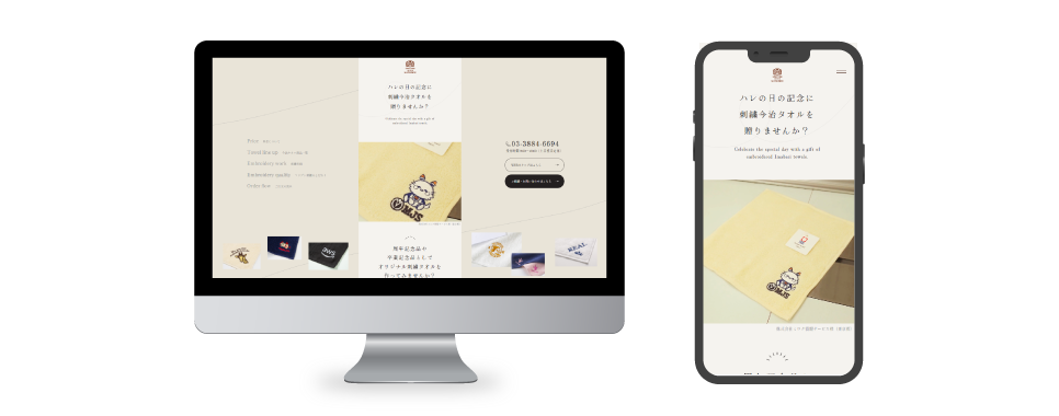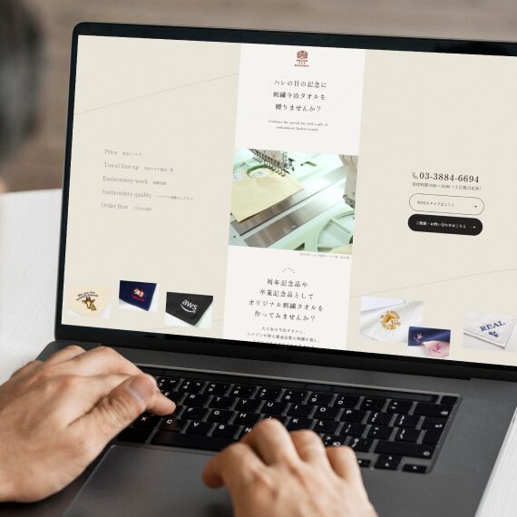 個人・団体向けに、スマートフォン閲覧に特化した刺繍今治タオルのLPを制作しました。どのような刺繍が可能かを具体的にイメージしていただけるよう実績を豊富に掲載し、マツブン様の高い技術力やバリエーションの豊かさが伝わるビジュアル中心の構成としています。あわせて、刺繍に対するこだわりや品質への想いを丁寧に表現することで、安心感と信頼感を醸成し、購買意欲の向上を図りました。また、ページ内には複数のCVエリアを設け、お問い合わせやご相談につながりやすい導線設計としています。
